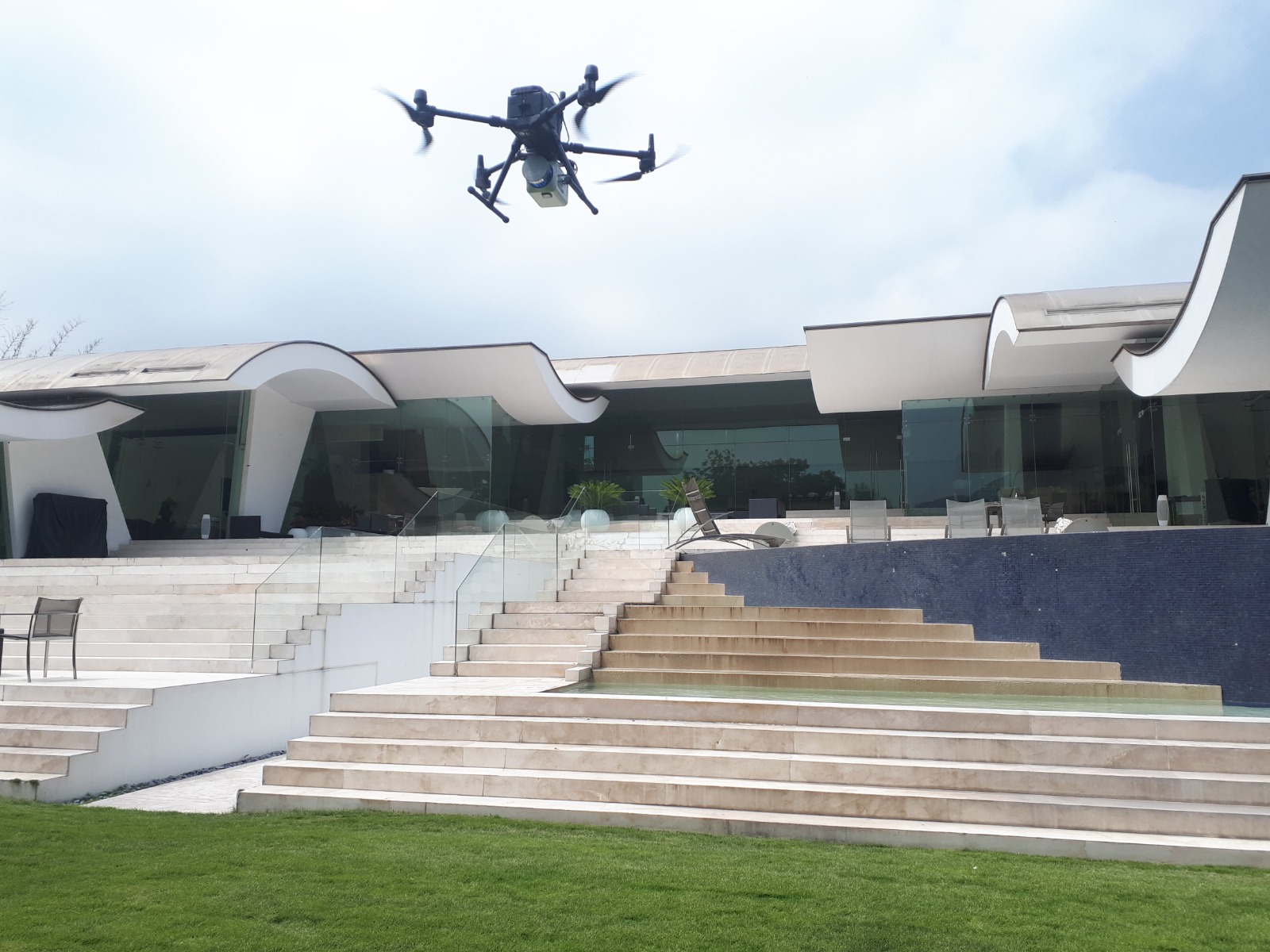 Uso de drones de calidad topográfica en ingeniería para obtener información geográfica y/o topográfica para la toma de decisiones informadas. Los alcances, los cuales pueden ser desde una inspección regular de la obra mediante imágenes aisladas o integradas de la obra, hasta ortomosaicos fotográficos de los cuales se pueden obtener medidas de lo que se aprecia en la ortofoto.